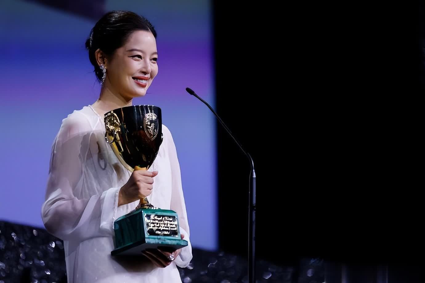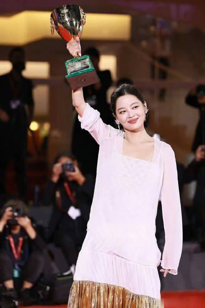 这次获奖还创下了好几个纪录:首位80后欧洲三大电影节影后、内地时隔33年再夺威尼斯最佳女演员、本届唯一全票通过的表演奖项。当评委赵涛给她颁奖时的拥抱镜头播出来,网友都忍不住感叹“这是中国女演员的传承时刻”。