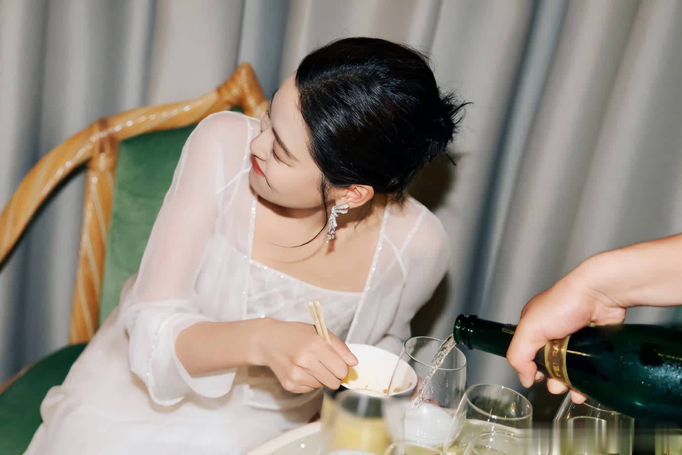 这组让大家热议不停的庆功照里,藏着太多让人觉得反差又可爱的细节:辛芷蕾穿的还是威尼斯闭幕红毯那件香奈儿25/26秋冬高定礼服,柔纱裙摆上的鎏金刺绣还闪着星光,手里却攥着双最普通的一次性筷子,正对着一盒红烧牛肉泡面吃得津津有味。旁边有人举着香槟准备倒酒,金色的酒液马上要注进高脚杯,和泡面冒出来的热气在镜头里撞出了特别奇妙的化学反应。
